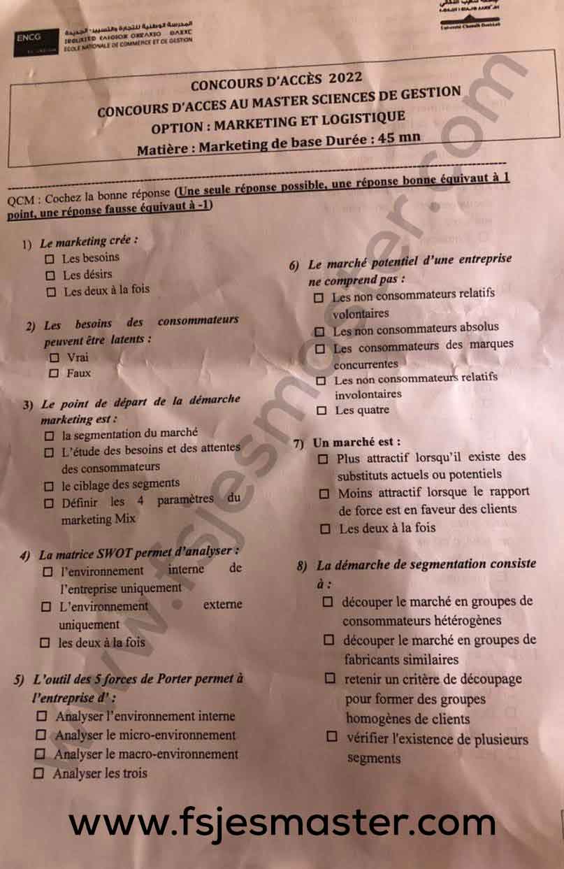 Exemple Concours d'accès au Master Marketing et Logistique 2023-2024 - ENCG El Jadida